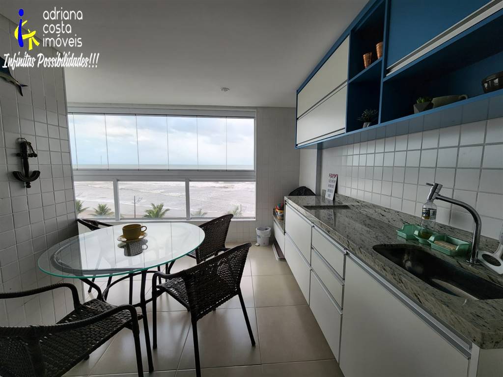 Apartamento frente ao mar de 97,90 m² com 2 dormitorios (1 suite) ambos com varanda, 1 banheiro social, sala 2 ambientes com sacada, cozinha super espacosa, area de servico espacosa, 1 lavabo e 1 vaga de garagem. O residencial conta com portaria 24 hs, rampa de acesso, internet, salao de jogos e festas e espaco grill com churrasqueira e forno a lenha. cada andar conta com lixeira que e higienizada 2 vezes ao dia. O Residencial fica em frente ao mar, e esta proximo de tudo, padarias, farmacias, escolas, clinicas medicas, pronto socorro central, rodoviaria, e tudo que sua familia precisa para viver com muito conforto, seguranca e praticidade. Viva com saude e o bem estar de ter a brisa do mar entrando pela sua janela! Marque uma visita!!