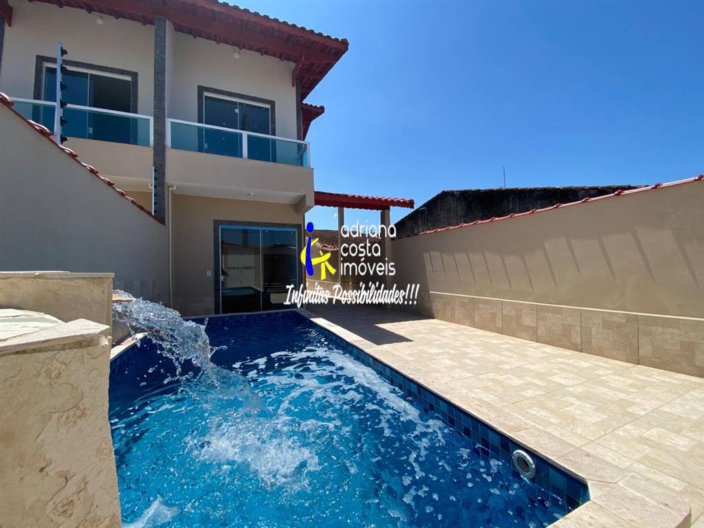 Casa terrea, geminada, 76,66 m² de area util com 2 dormitorios (1 suite), 1 banheiro social - todos com box de vidro, sala ampla, cozinha americana, area de servico, piscina com cascata, 2 vagas de garagem. Localizado a 280 metros da praia. Marque ja uma visita!!!!