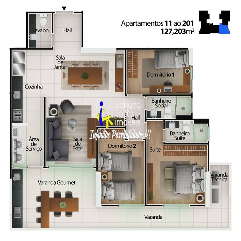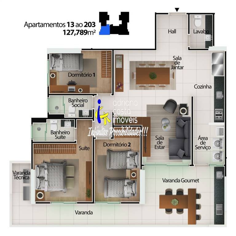 Área Útil127,78m²