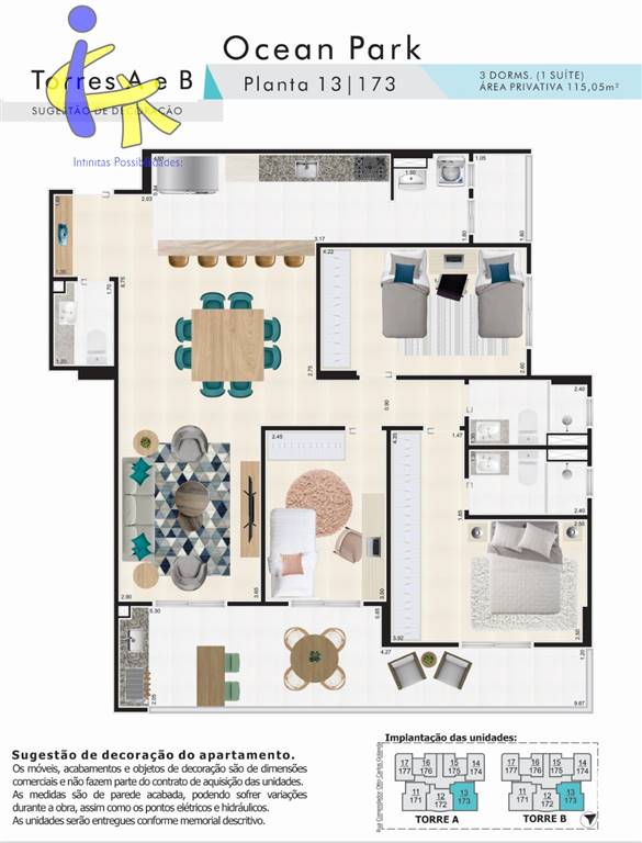 Apartamentos a partir de R$557.176,70 com 2 e 3 dormitorios (1 suite), 80 a 115m² de area privativa, varanda gourmet, 1 ou 2 vagas de garagem. Lazer completo e diferenciado: Piscina com borda infinita, Espaco Crossfit, Beauty Center, Pergolado, Pet Shop, Coworking, Home TV, Mini Quadra, salao de festas, salao de jogos, brinquedoteca, espaco teen, espaco grill, saunas, pet place, Localizado no bairro Cidade Ocian, o mais tradicional da Praia Grande, proximo a praia e de comercios e servicos, 250 metros da praia. Previsao de entrega: novembro/2024