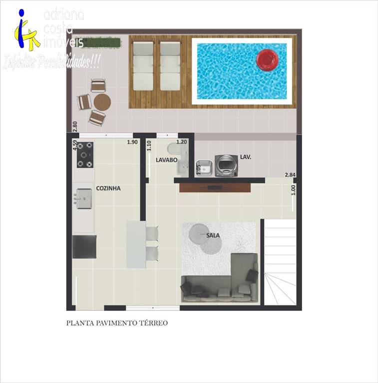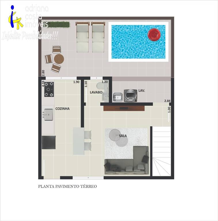 Sobrado novo com 2 suítes, piscina, churrasqueira, 50 metros da praia - Vila Atlântica