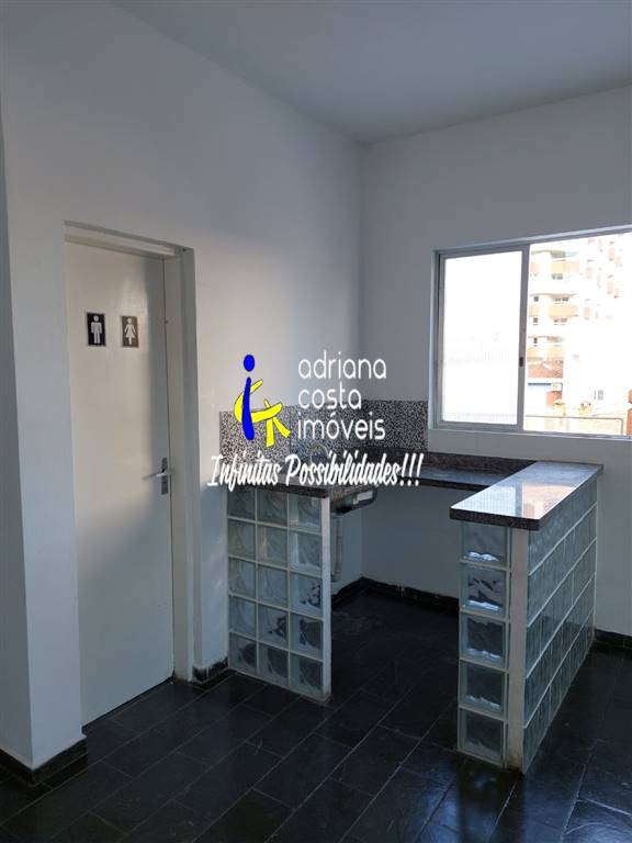 Sala comercial (sobreloja) no Centro medindo 40m2 de área interna com banheiro e mini cozinha e 55m2 de varanda com uma bela vista central. Marque já uma visita!!!